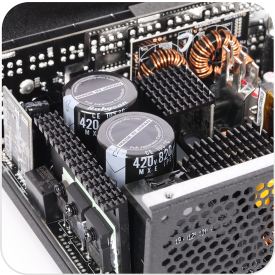 EDGE serisi güç kaynaklarının hem primer hem de sekonder parçalarında 105C sıcaklıkta çalışabilme özelliğine sahip ünlü Japon firmaları Rubycon, FP-CAP ve Nichicon tarafından üretilen katı ve elektrolitik kapasitörler kullanılmaktadır. Bu kapasitörler, Tayvan’daki benzer 85C tipi kapasitörlerle karşılaştırıldığında 4 kat daha uzun ömürlüdür ve akım dalgalanmalarına karşı gözle görülür derecede daha dayanıklıdır.