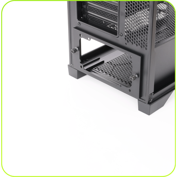 0,9 mm’ye kadar kalınlığa sahip çelik plaka ve GRIFFIN G9 kasasının modern iskelet tasarımı, onu son derece güçlü bir gövde haline getiriyor. Ayrıca, Z-kayma tabanları sayesinde, kasanın dengesi çeşitli seviyelerde korunur ve geniş ve optimize edilmiş iç mekana rağmen, modern ve üst düzey parçaları desteklemede neredeyse hiçbir sınır yoktur.